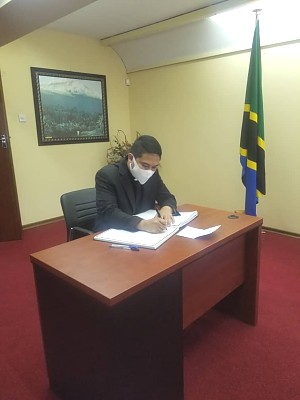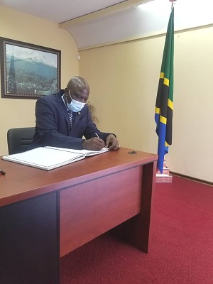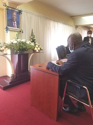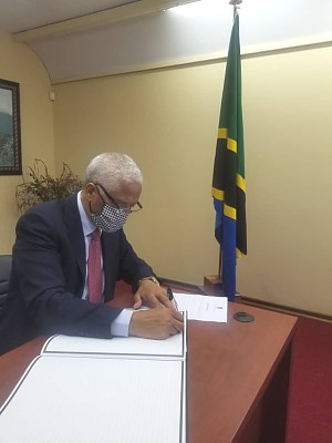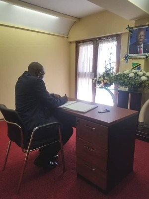 Diplomats in Zimbabwe signing the condolences book for the late President Magufuli